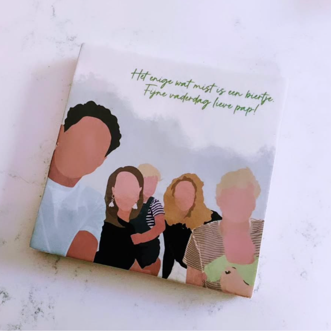 Kies een foto van een mooi moment, je huisdier, je huis, trouwkaart, geboortekaartje, of een leuke tekst.