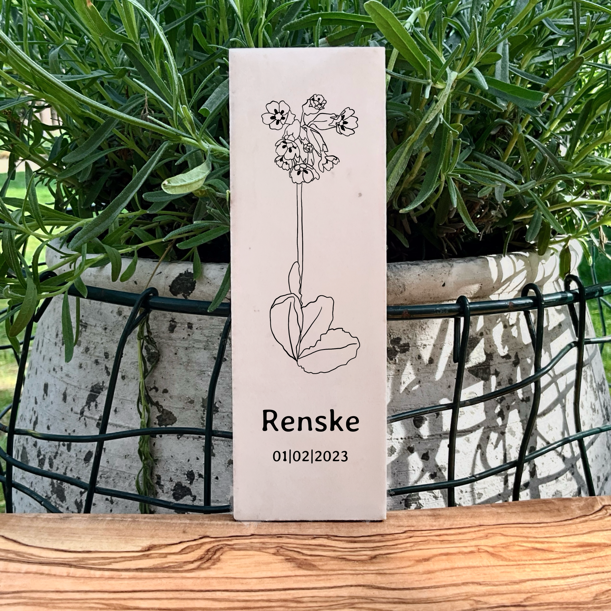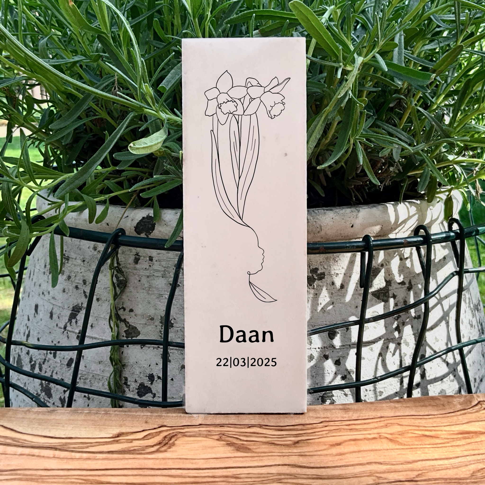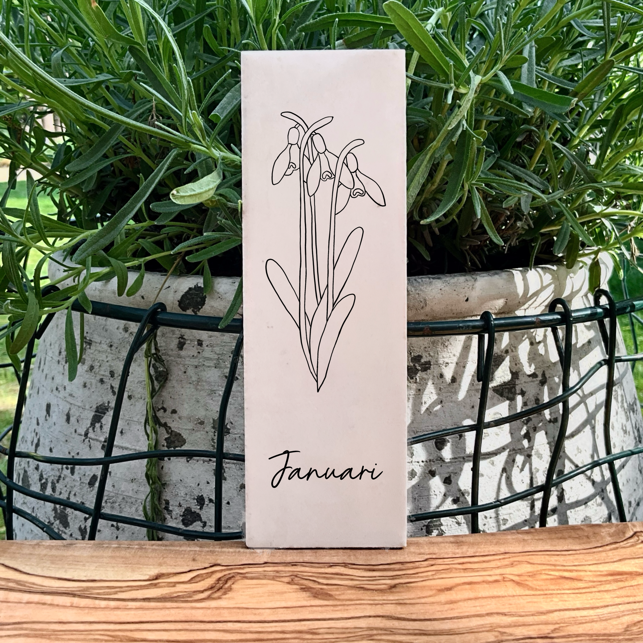 Bij iedere maand hoort een geboortebloem met ieder een eigen betekenis. Wil je 1 geboortebloem? Dan komt deze op een langwerpig tegeltje van 15×5 cm. Bij meerdere geboortebloemen zijn deze ook naast elkaar op een tegeltje van 10×10 te bestellen.