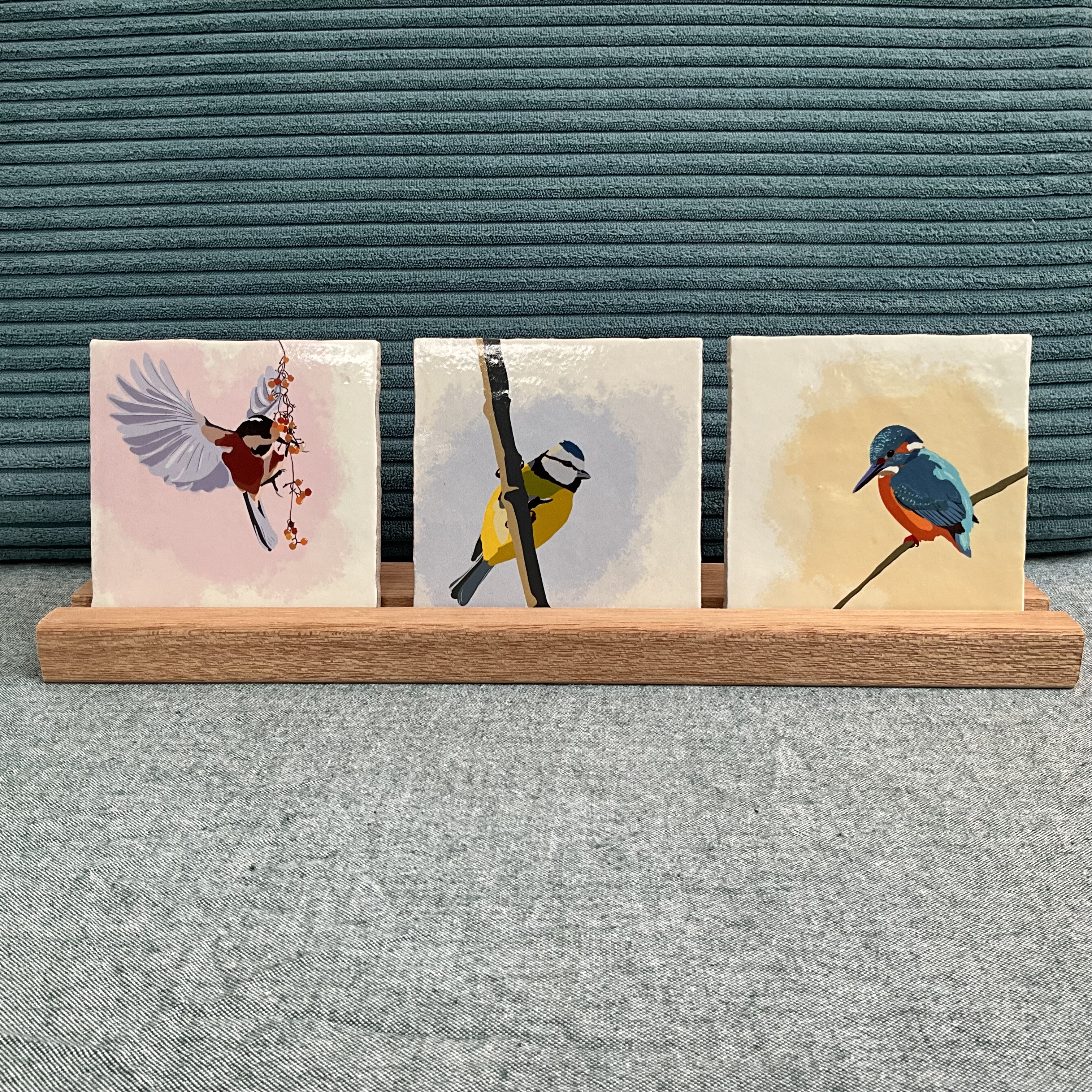 Houder speciaal voor onze tegeltjes. De gefreesde sleuf heeft de juiste breedte om de tegeltjes in te zetten.
