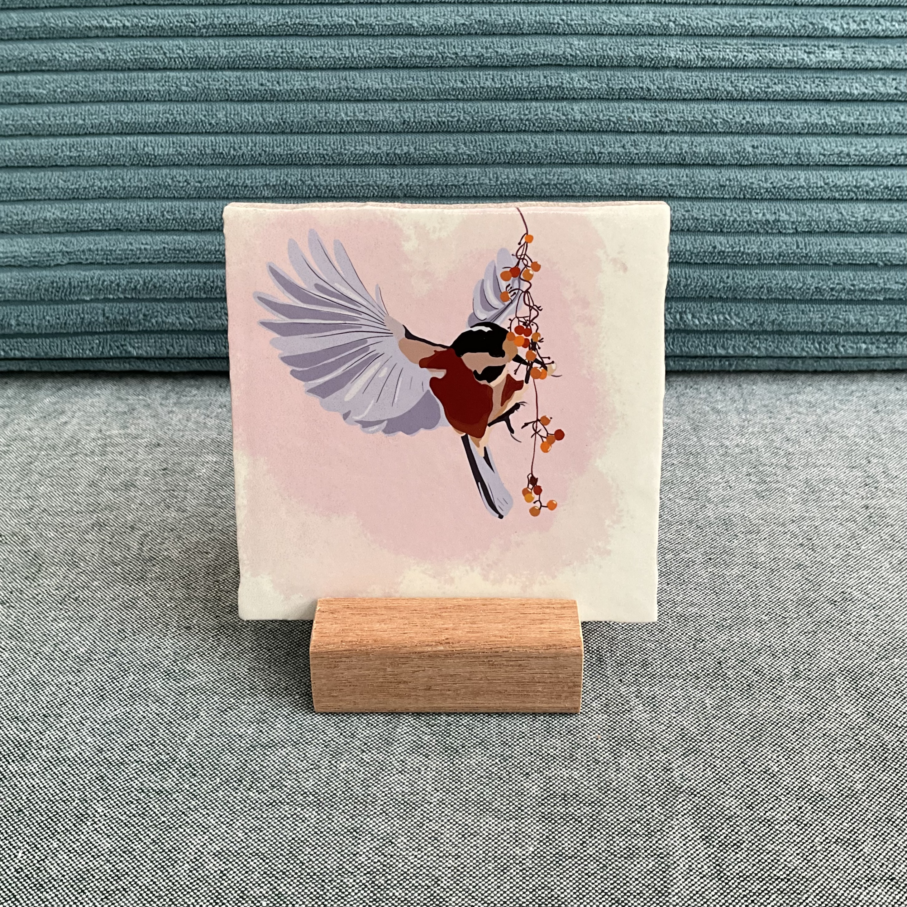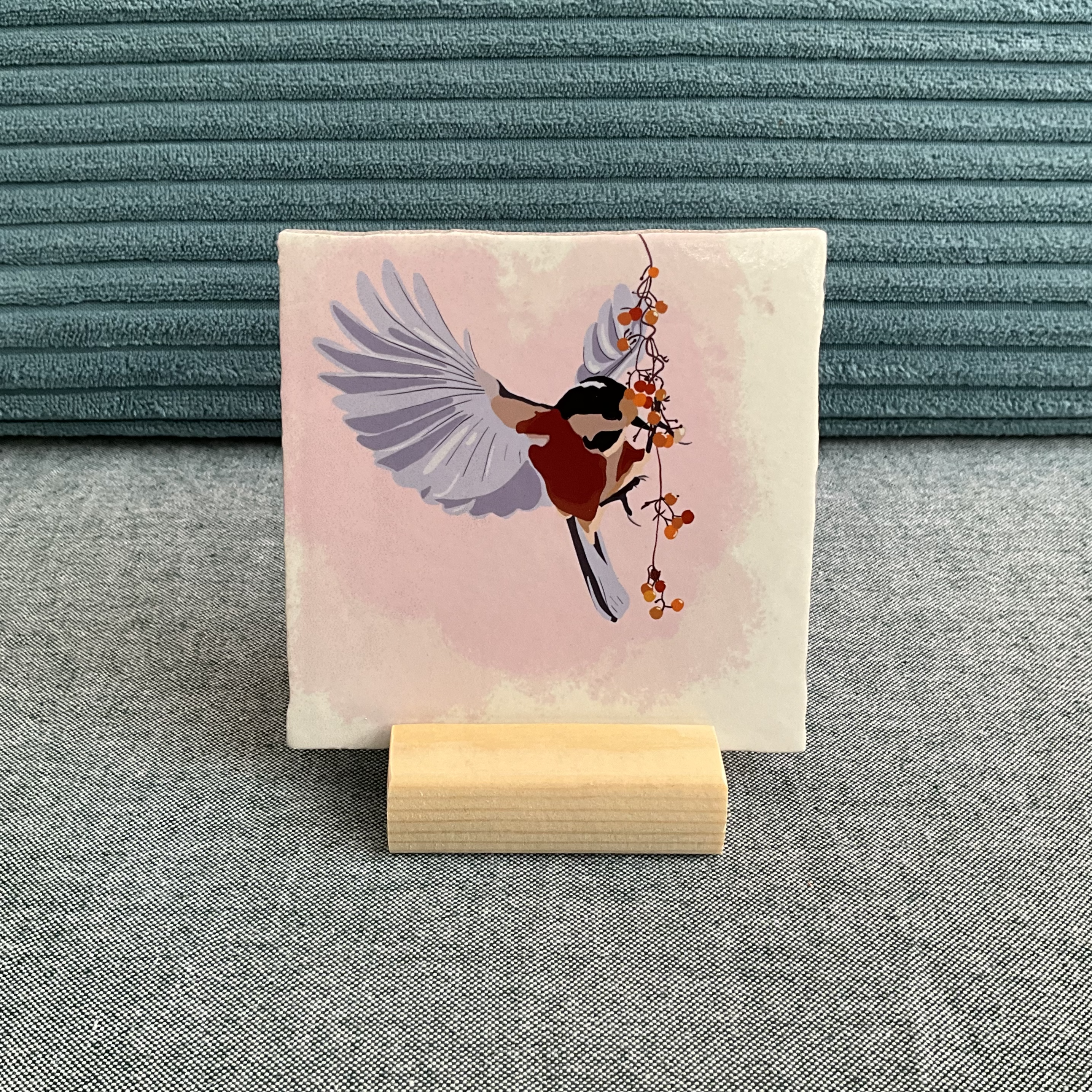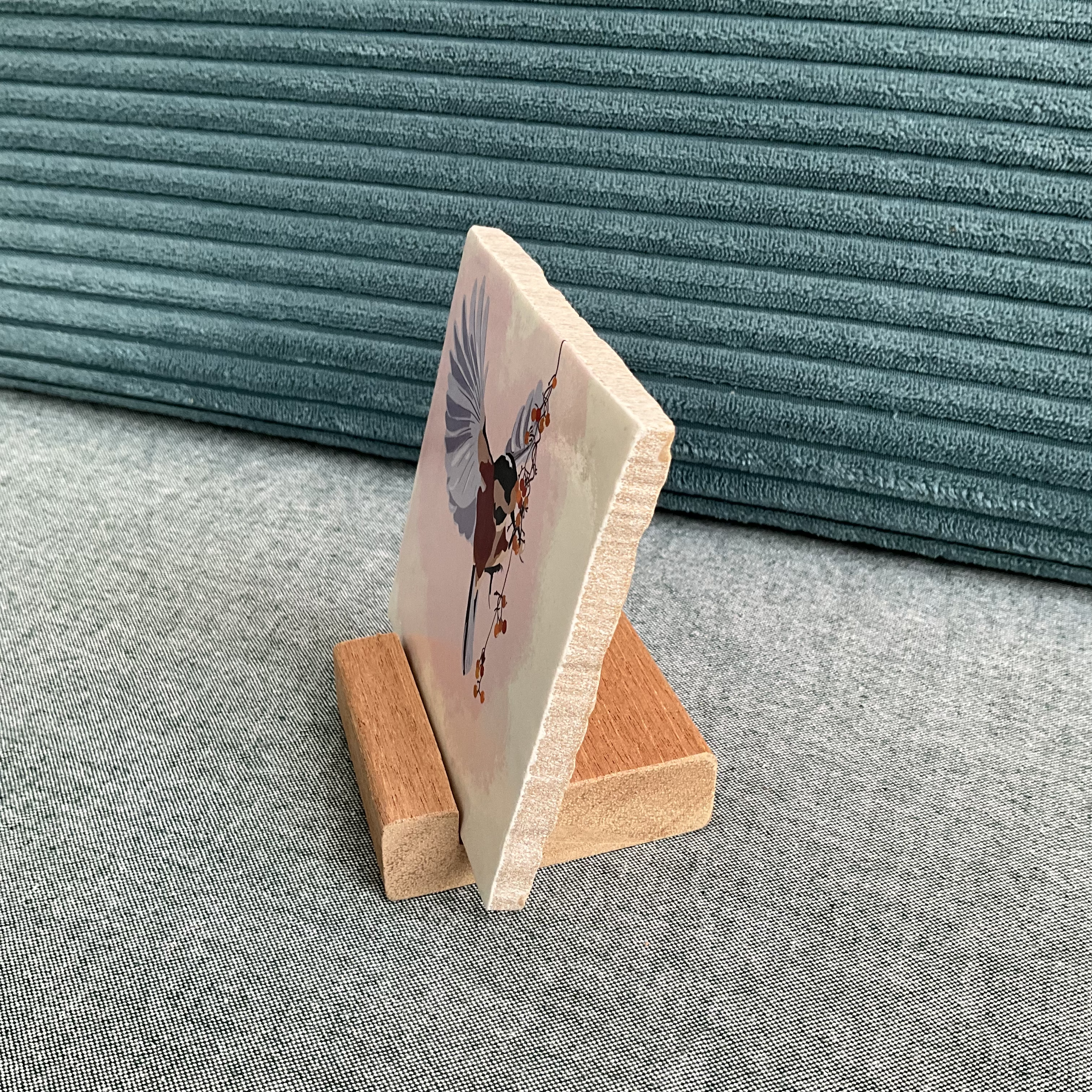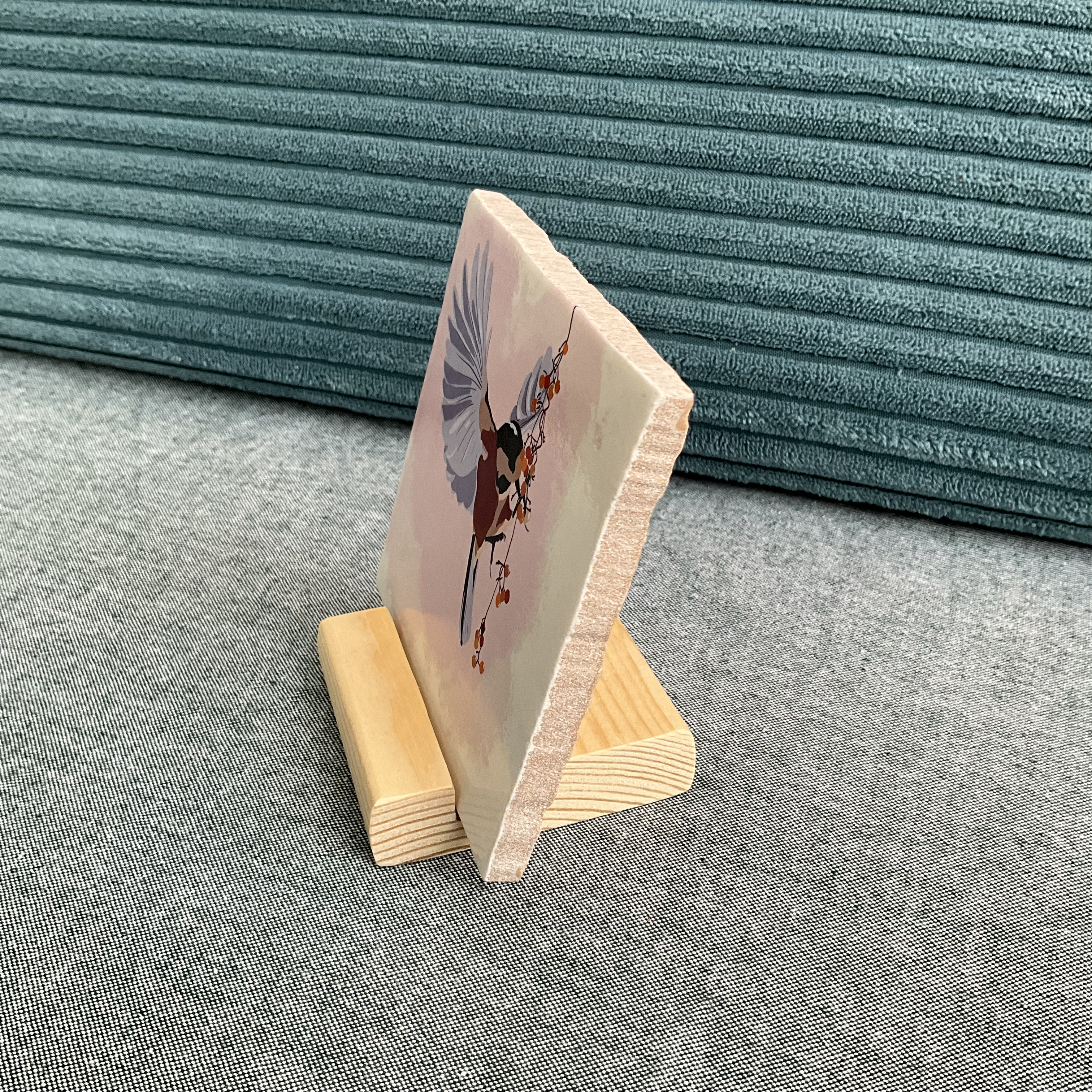 Houder speciaal voor onze tegeltjes. De gefreesde sleuf heeft de juiste breedte om de tegeltjes in te zetten.