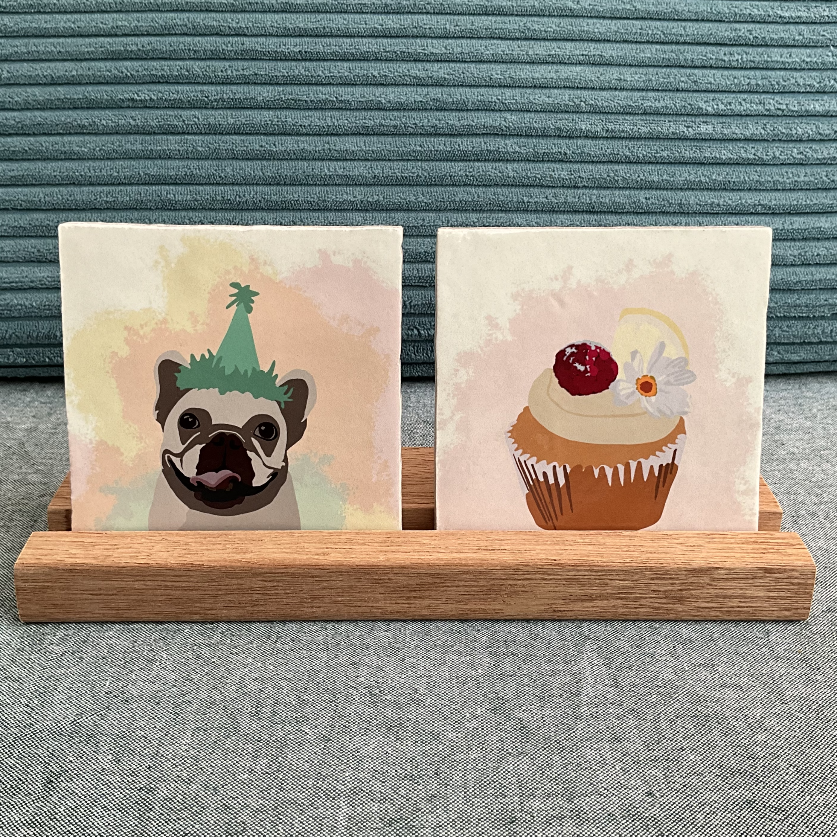 Houder speciaal voor onze tegeltjes. De gefreesde sleuf heeft de juiste breedte om de tegeltjes in te zetten.